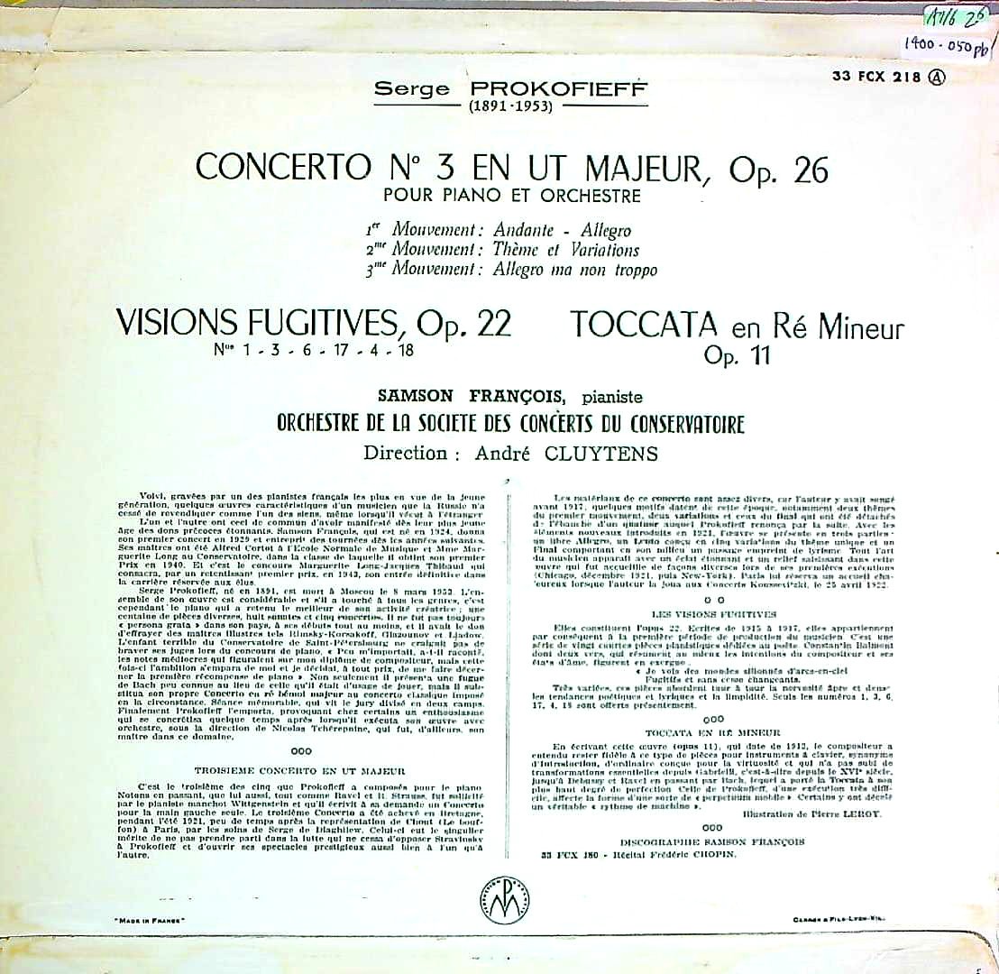 商品コード:1400-050pb[COLUMBIA] S.フランソワ(pf)/ プロコフィエフ:Pf協奏曲3番Op.26, つかの間の幻影Op.22(抜粋6曲), トッカータ ニ短調Op.11