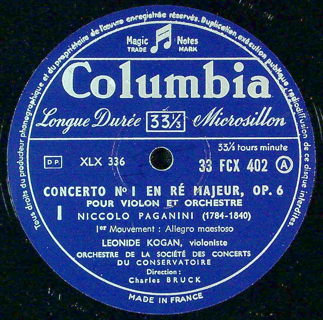 商品コード:1400-040[COLUMBIA] L.コーガン(vn)/A.ムイトニク(pf)--(カンタービレのみ参加) / パガニーニ:Vn協奏曲1番Op.6, カンタービレOp.17