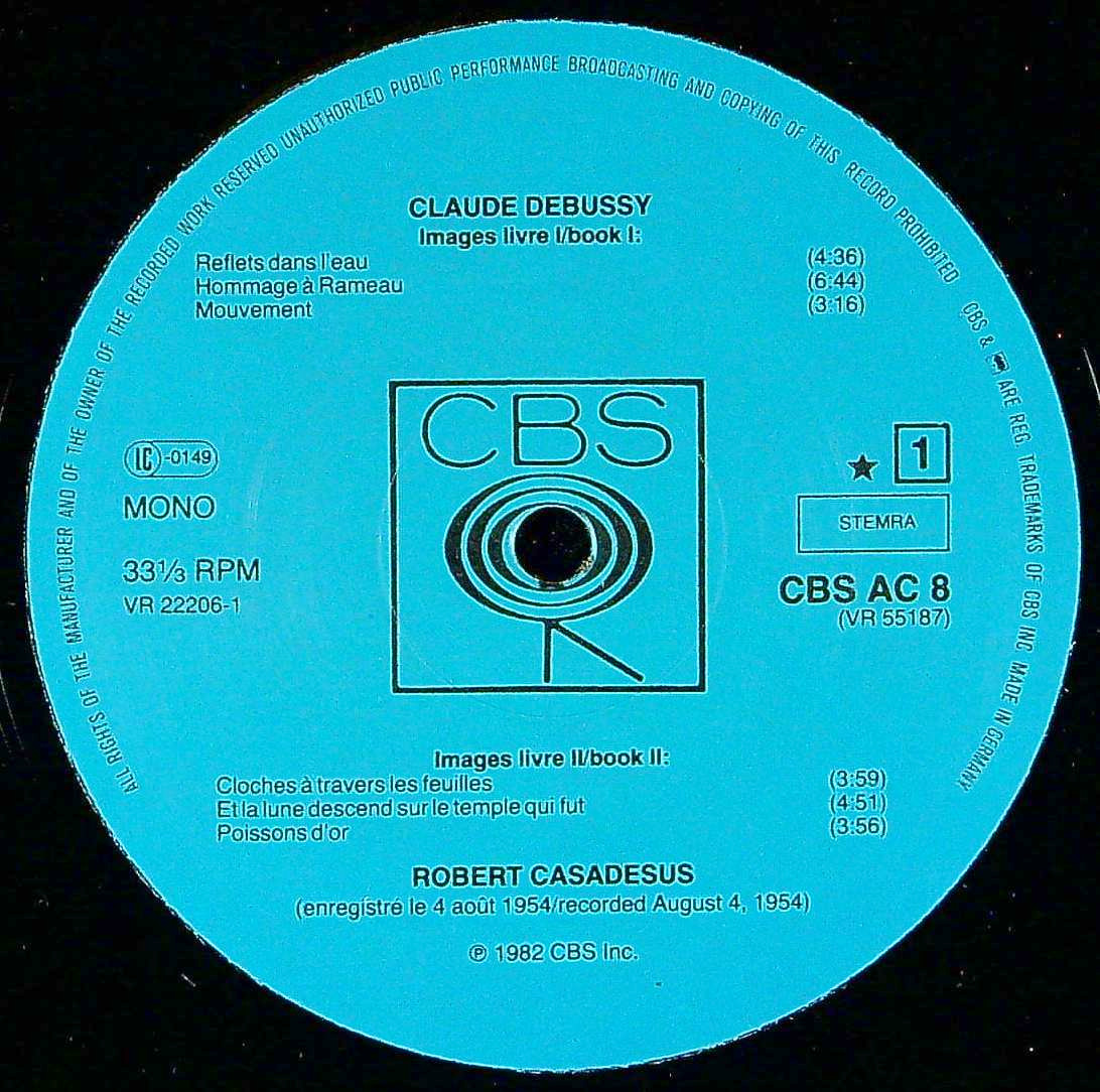 商品コード:1400-036[CBS] R.カサドシュ(pf), G.カサドシュ(pf) 他/ カサドシュ協会Vol.8/ドビュッシー:映像第1集&第2集, 版画, マスク, 喜びの島, 2つのアラベスク 他