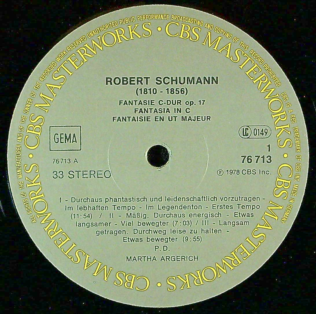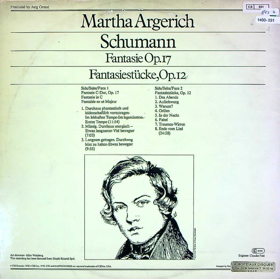商品コード:1400-031[CBS] M.アルゲリッチ(pf) / シューマン:幻想曲Op.17, 幻想小曲集Op.12