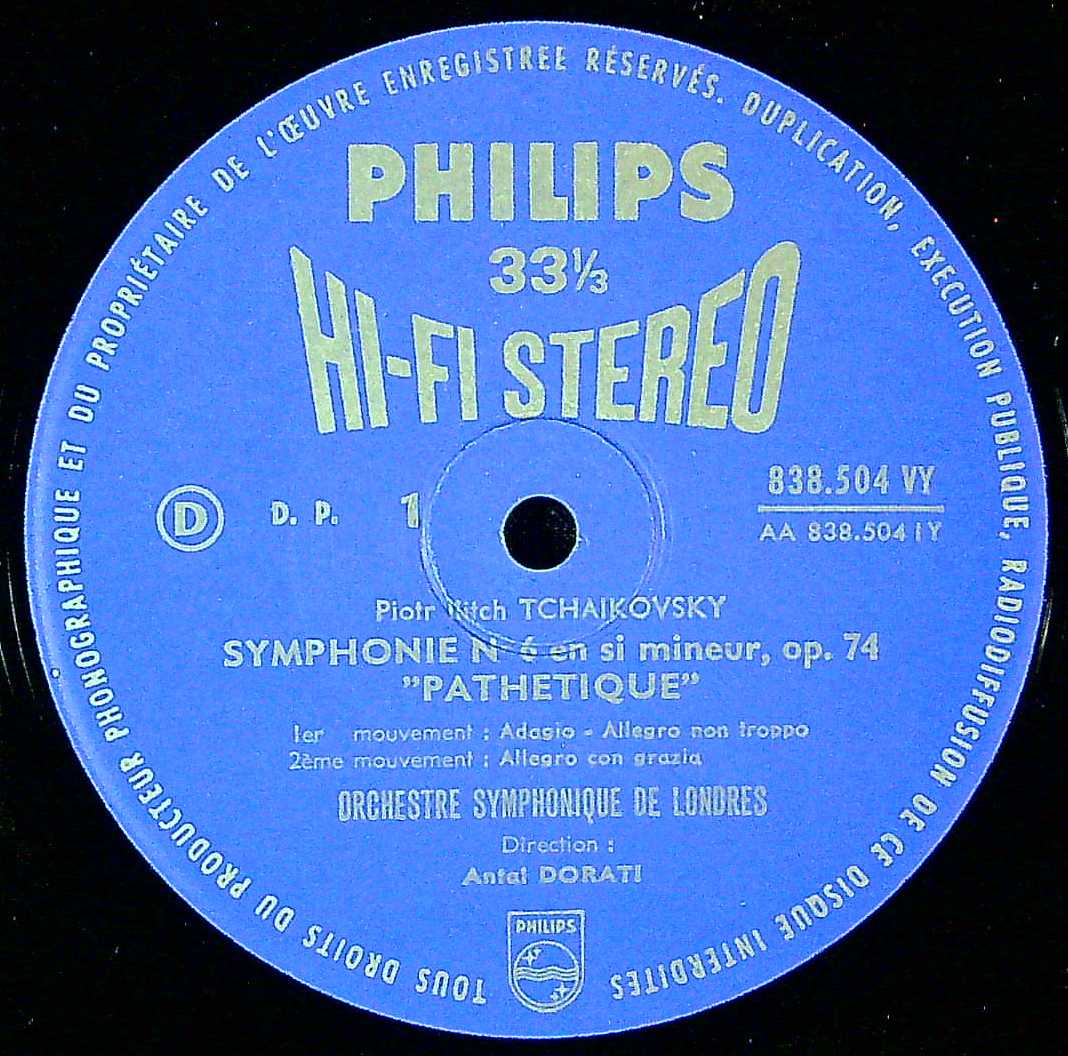 商品コード:1402-054[PHILIPS] A.ドラティ/ チャイコフスキー:交響曲6番Op.74「悲愴」