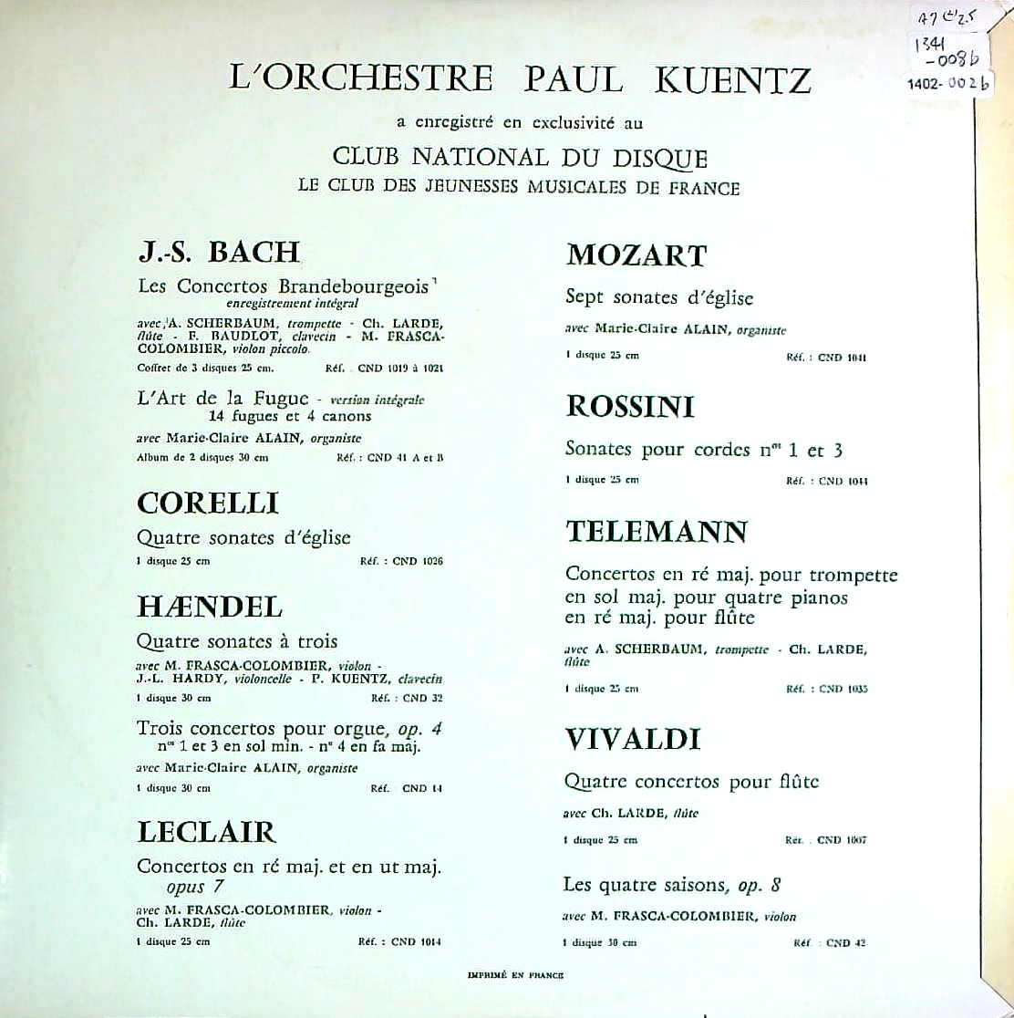 商品コード:1402-002b[CLUB NATIONAL] M.フラスカ・コロンビエ, L.ガルニエ(vn)/ バッハ:Vn協奏曲1番BWV.1041, 2番BWV.1042, 2Vn協奏曲BWV.1043, 2Vn協奏曲(編曲版)BWV.1060