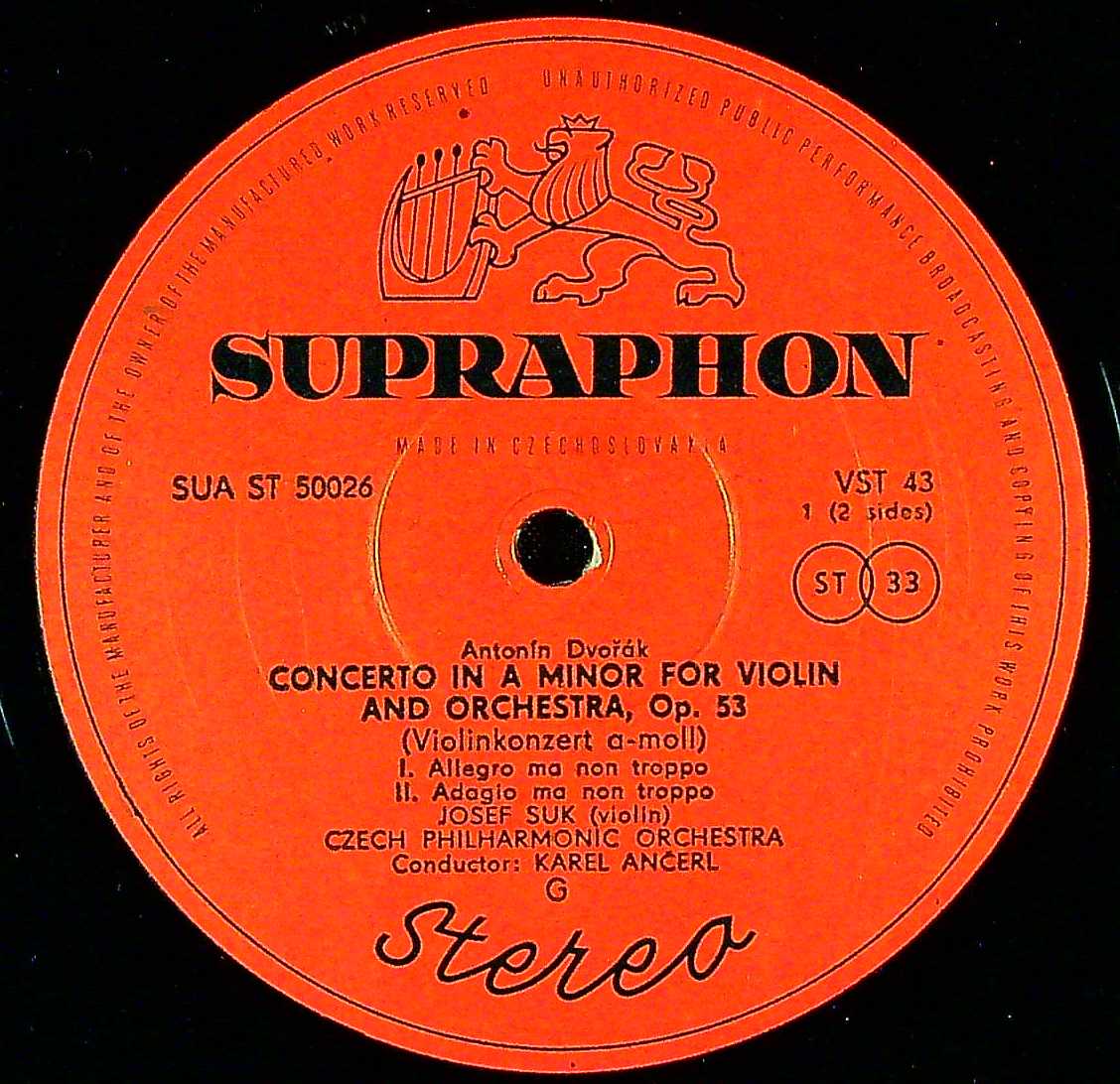 商品コード:REG-4643[SUPRAPHON] J.スーク(vn) K.アンチェル/ ドヴォルザーク:Vn協奏曲Op.53, Vnと管弦楽のためのロマンス ヘ短調Op.11