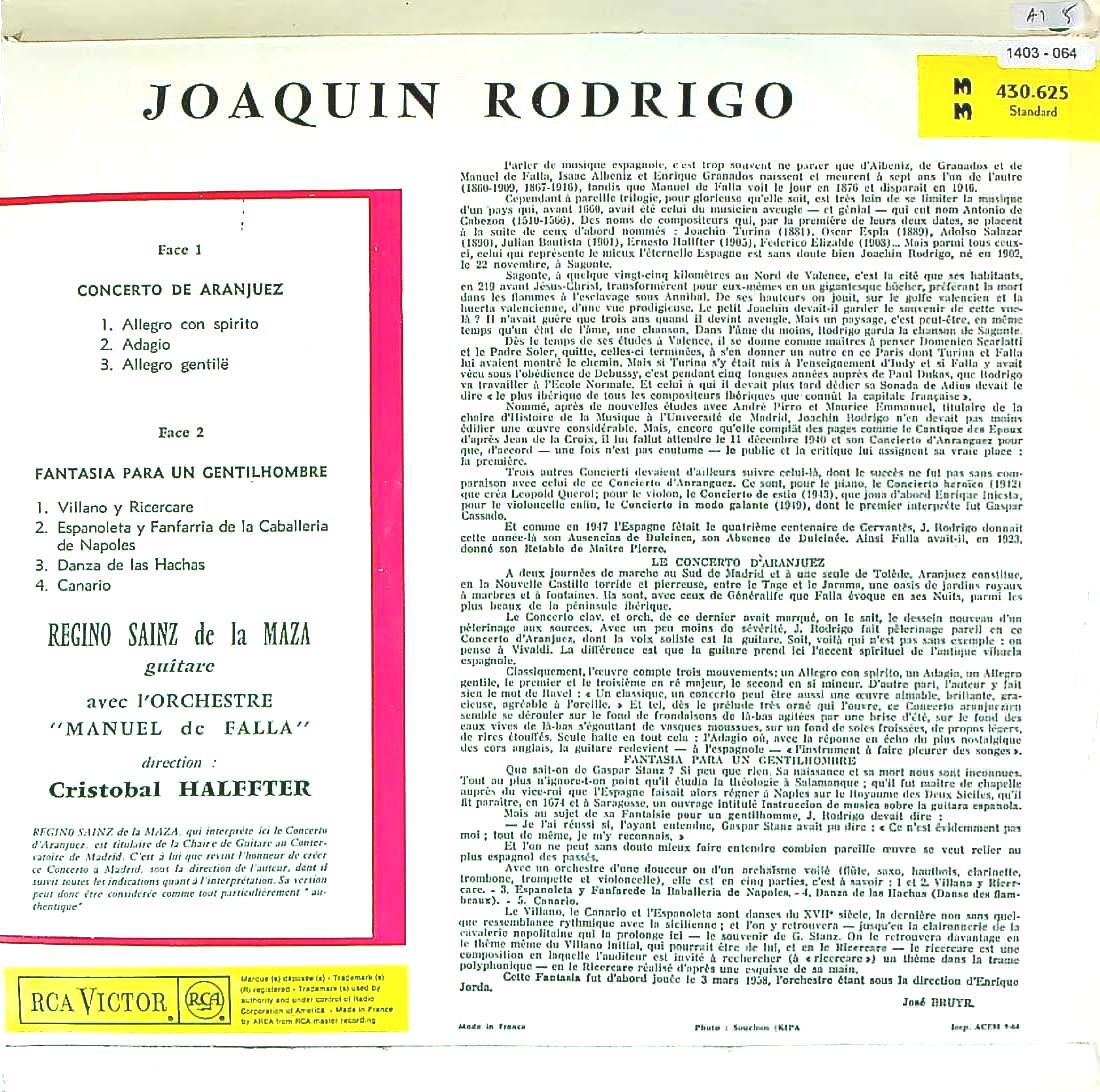 商品コード:1403-064[RCA] R.サインス・デ・ラ・マーサ(gt)/ ロドリーゴ:アランフェス協奏曲, ある貴紳のための幻想曲