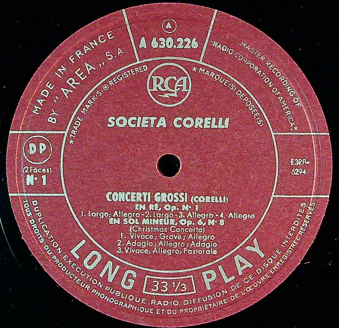 商品コード:1403-063[RCA] ソチエタ・コレッリ合奏団 / コレッリ:合奏協奏曲Op.6(全12曲/抜粋5曲)/第1番&2番, 7~9番