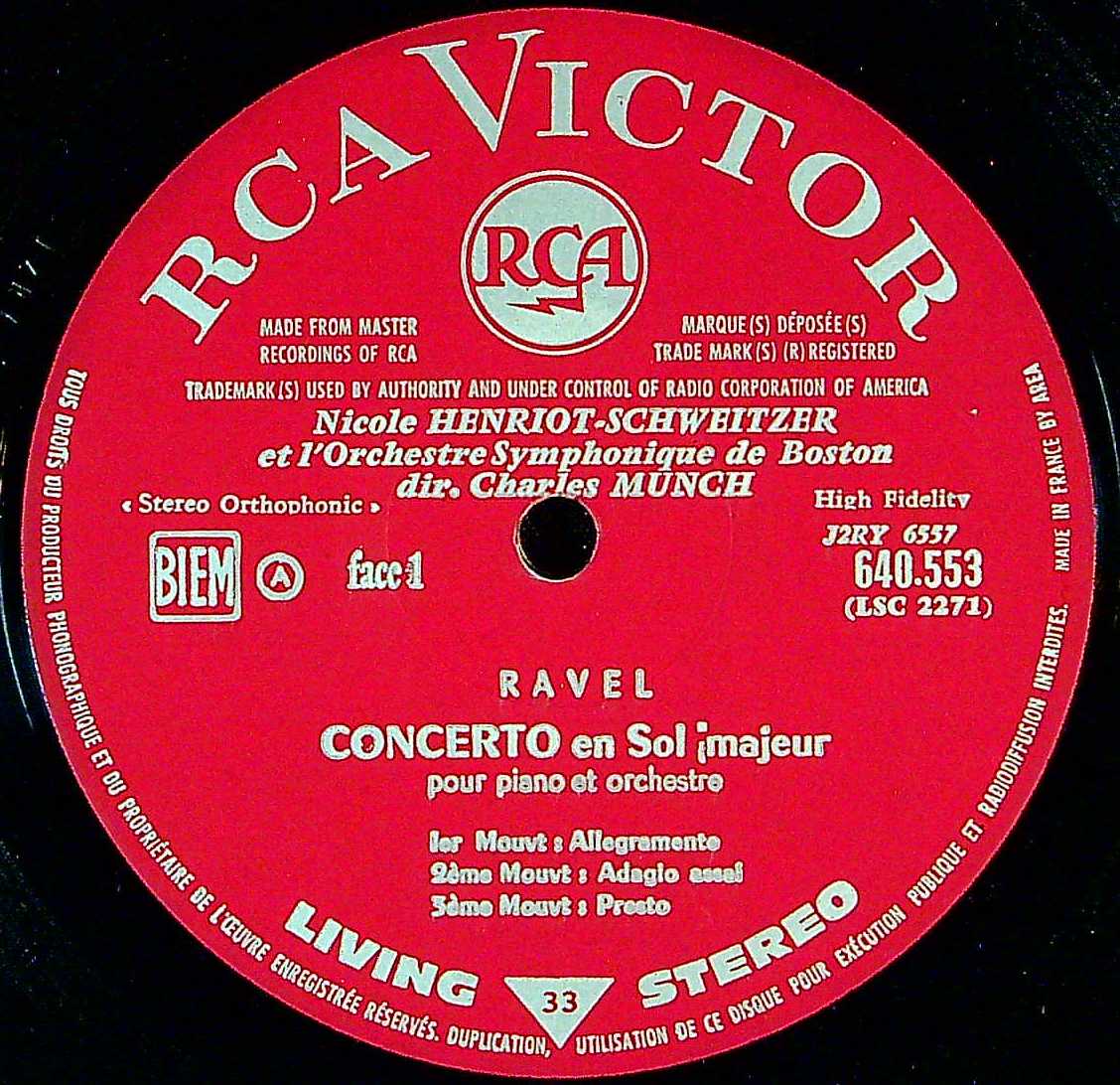 商品コード:1403-061[RCA] N.アンリオ・シュヴァイツァー(pf) C.ミュンシュ/ ラヴェル:Pf協奏曲 ト長調, ダンディ:フランスの山人の歌による交響曲Op.25