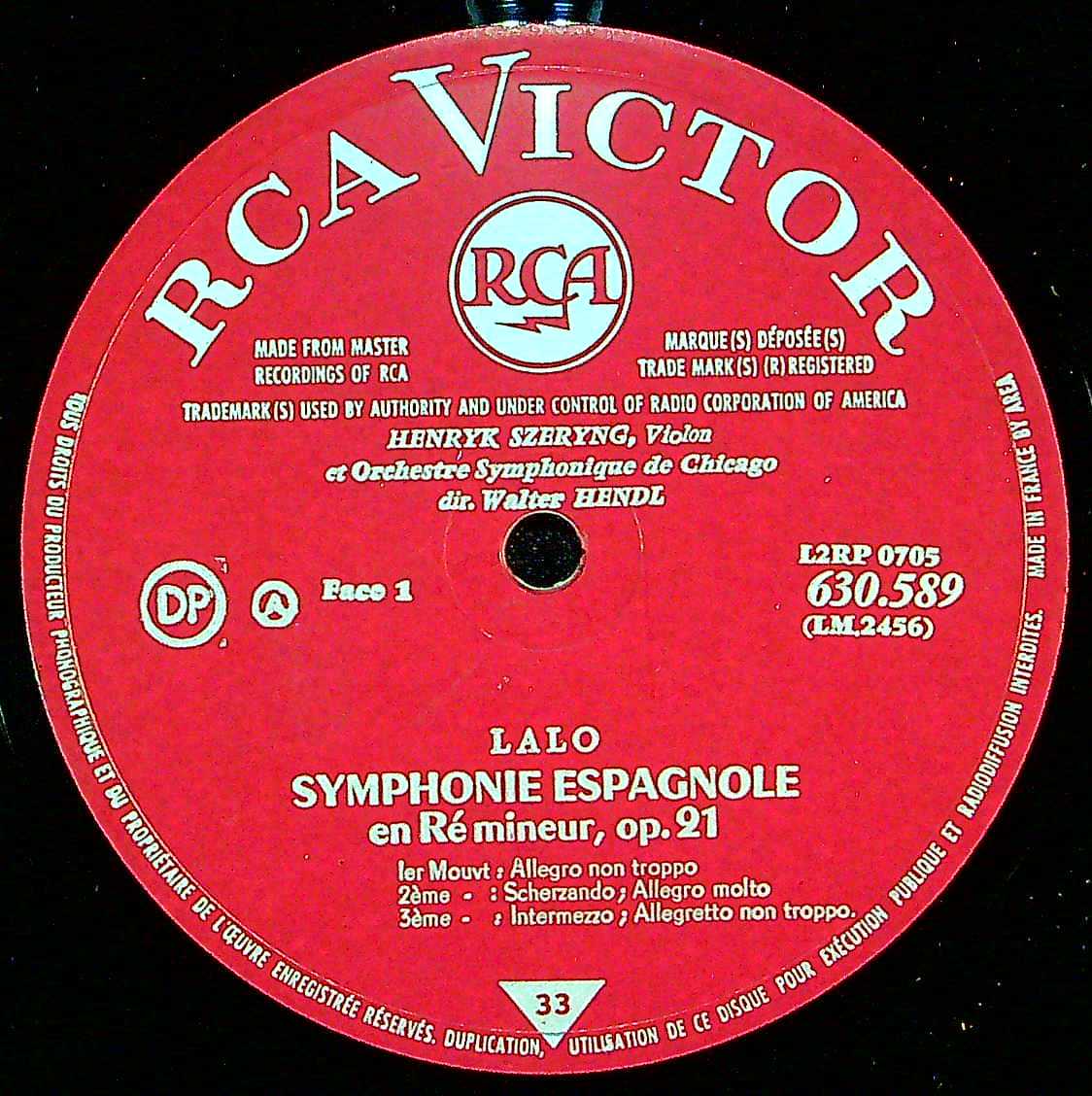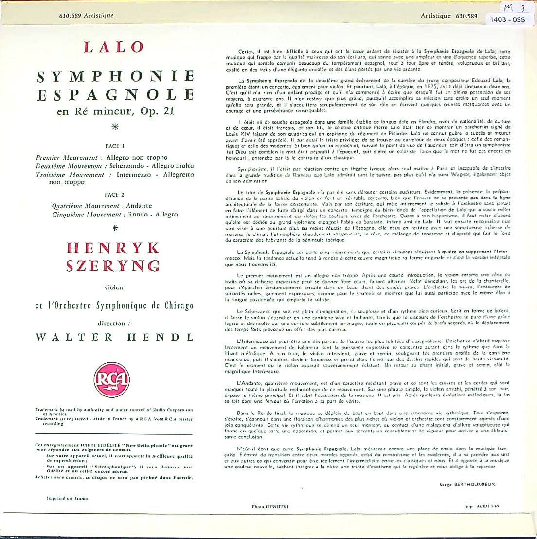 商品コード:1403-055[RCA] H.シェリング(vn) W.ヘンドル / ラロ:スペイン交響曲Op.21「Vn協奏曲2番」