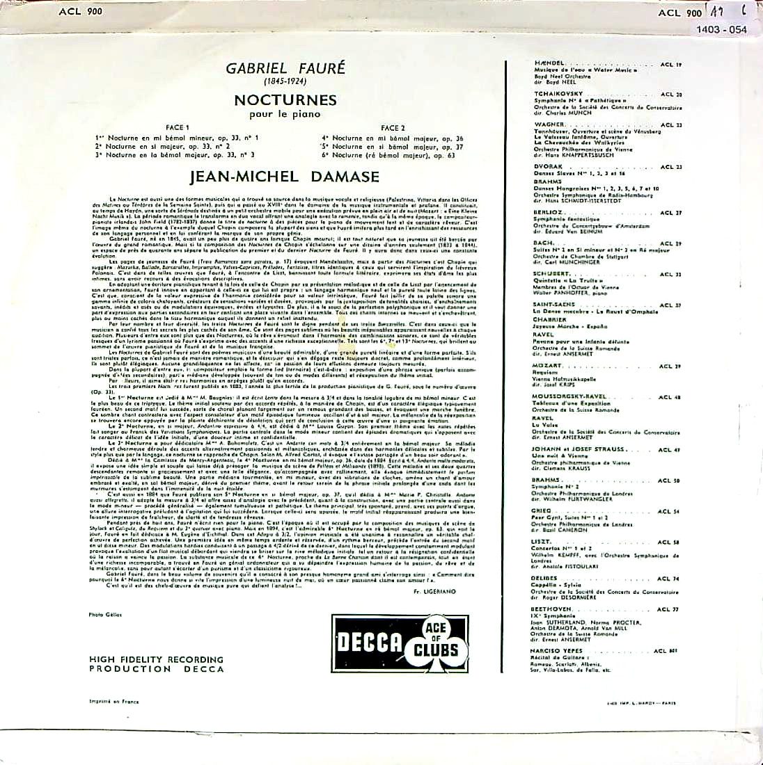 商品コード:1403-054[DECCA] J.M.ダマーズ(pf) / フォーレ:夜想曲集Vol.1/夜想曲1~6番Op.33, 36, 37, 63