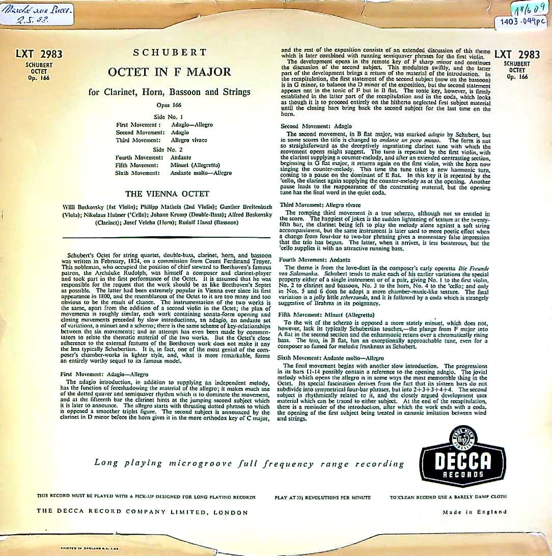 商品コード:1403-044pc[DECCA] ウィーン八重奏団/ シューベルト:八重奏曲D.803