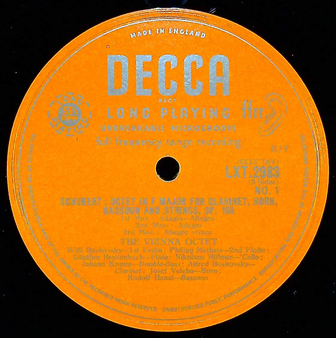 商品コード:1403-044b[DECCA] ウィーン八重奏団 / シューベルト:八重奏曲D.803