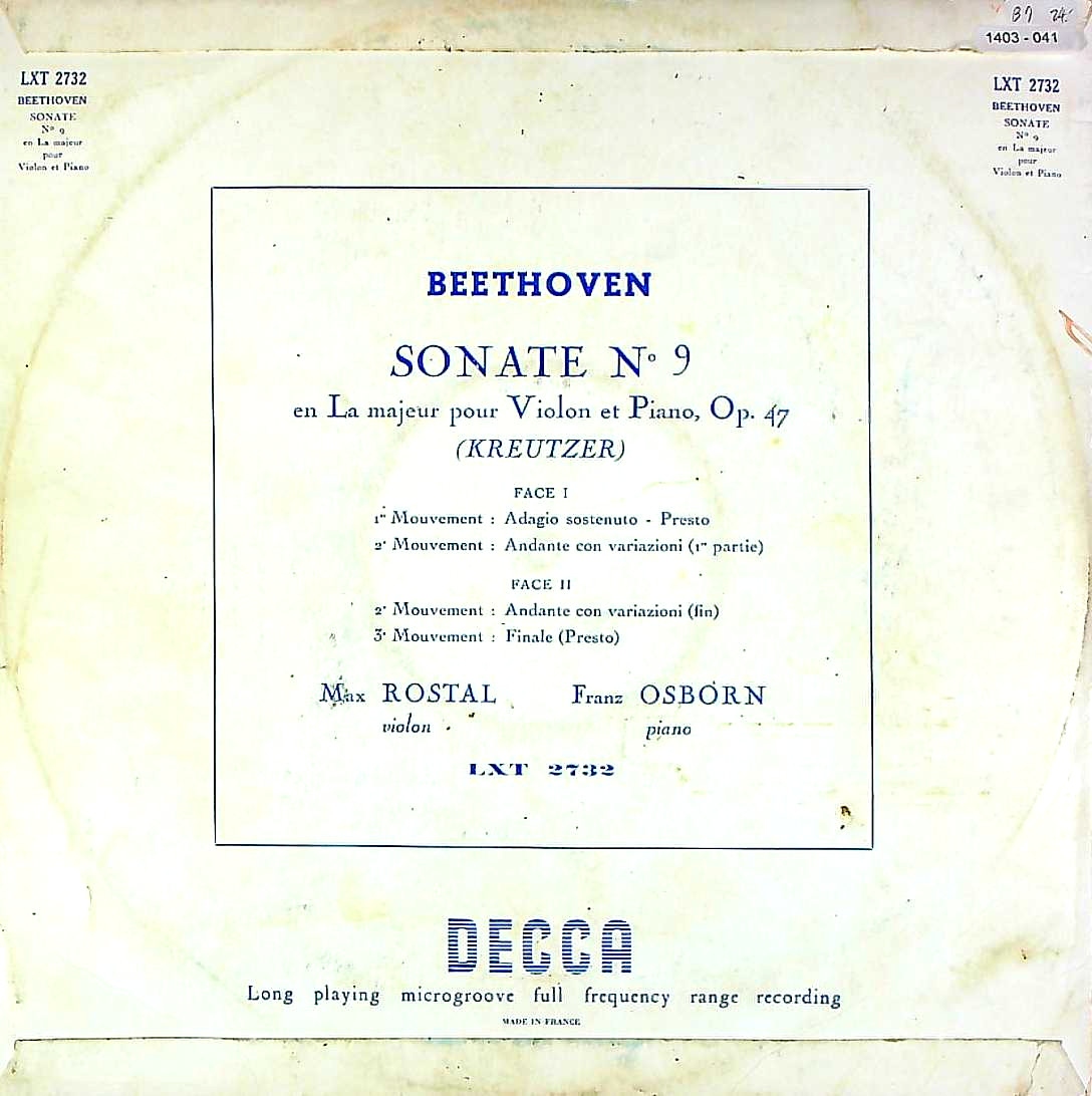 商品コード:1403-041[DECCA] M.ロスタル(vn)/ ベートーヴェン:Vnソナタ9番Op.47「クロイツェル」