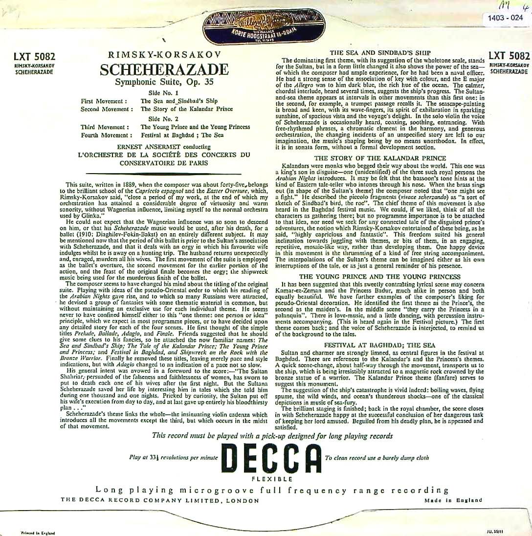 商品コード:1403-024n[DECCA] E.アンセルメ/ リムスキー・コルサコフ:交響組曲「シェヘラザード」Op.35