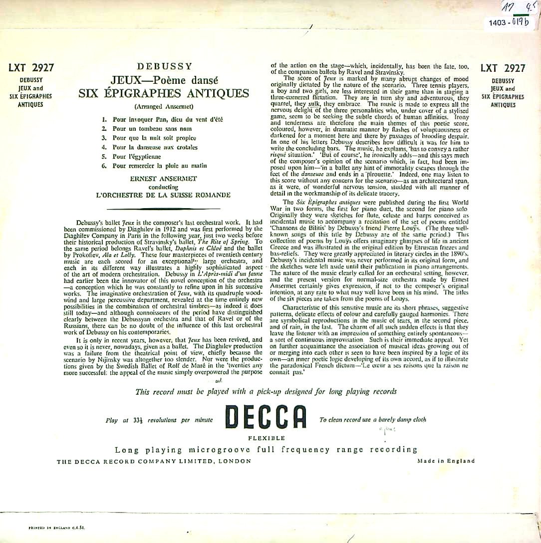 商品コード:1403-019b[DECCA] E.アンセルメ/ ドビュッシー:遊戯, 6つの古代の墓碑銘(アンセルメ編オーケストラ版)