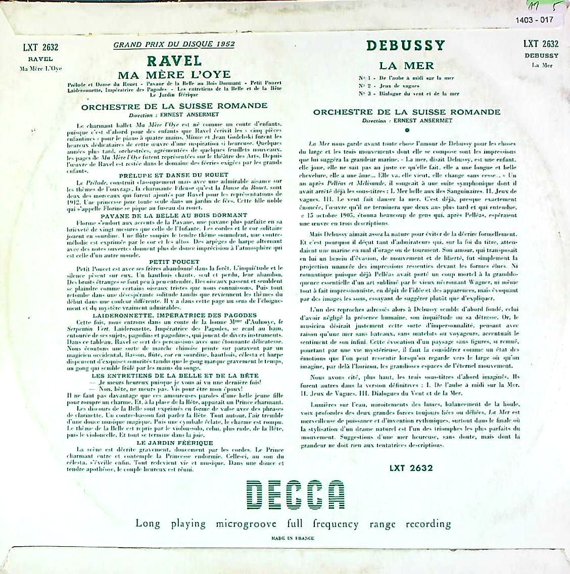 商品コード:1403-017p[DECCA] E.アンセルメ/ ラヴェル:バレエ音楽「マ・メール・ロワ」 , ドビュッシー:交響的素描「海」
