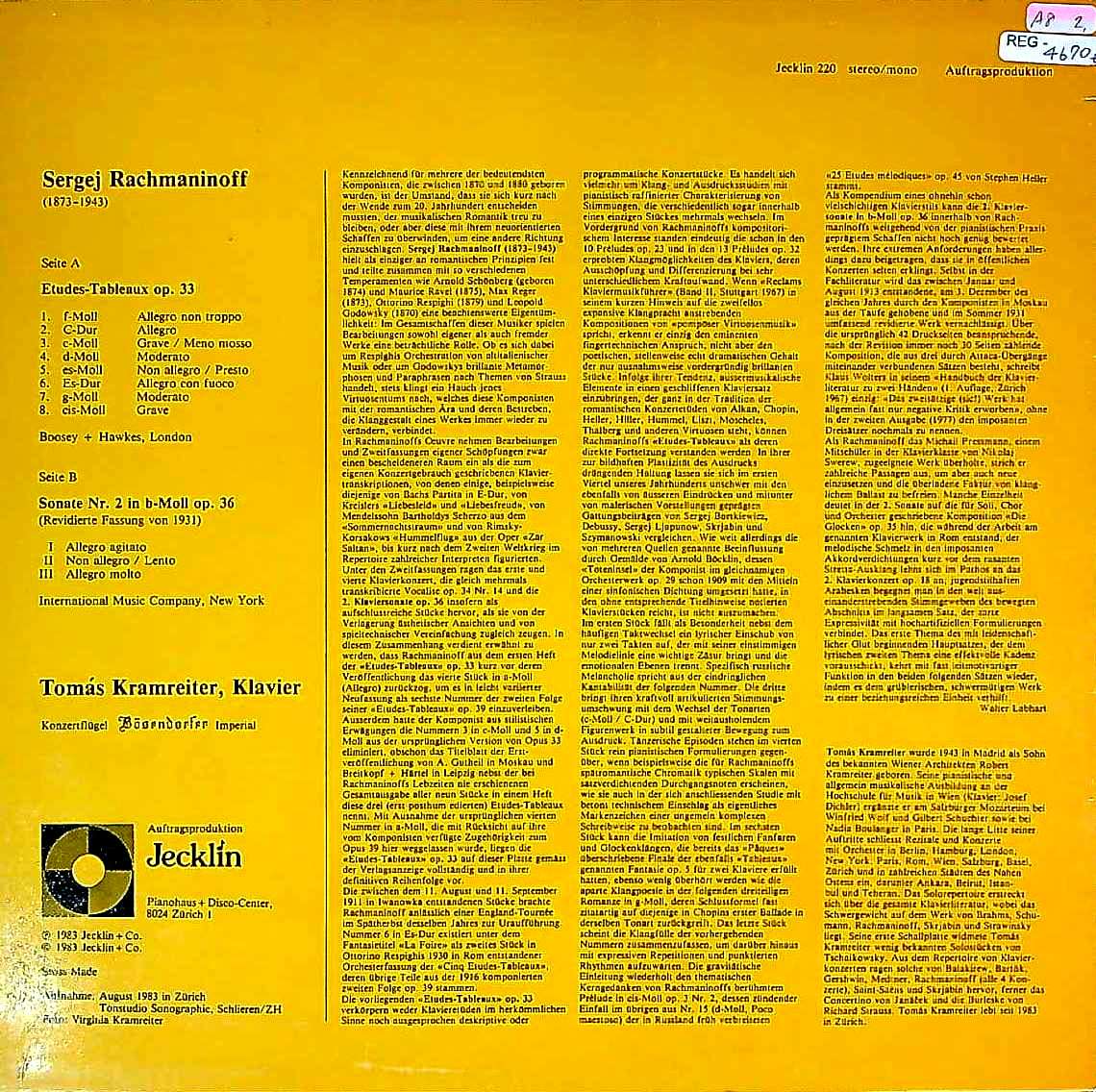 商品コード:REG-4670t[JECKLIN] T.クラムライター(pf) / ラフマニノフ:絵画的練習曲Op.33, Pfソナタ2番Op.36(1931年改訂版)