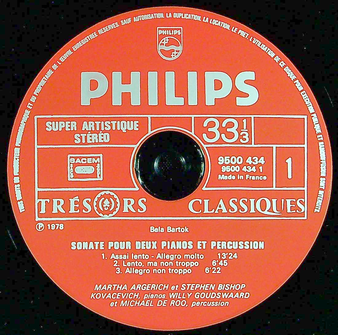 商品コード:1404-061[PHILIPS] M.アルゲリッチ, S.ビショップ・コヴァセヴィチ(pf) 他/ 2Pf・連弾集/バルトーク, モーツァルト, ドビュッシー