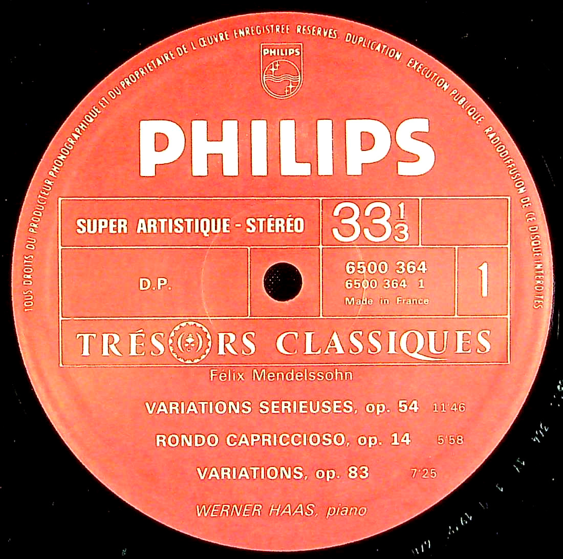 商品コード:1404-054[PHILIPS] W.ハース(pf) / メンデルスゾーン:Pf作品集/厳格な変奏曲Op.54, ロンド・カプリッチョーソOp.14, 変奏曲Op.83, 無言歌集(抜粋11曲)