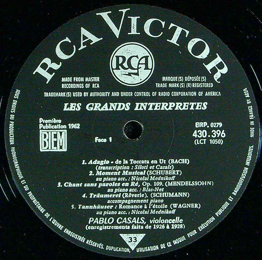 商品コード:1404-035[RCA] P.カザルス(vc) / Vc小品集/バッハ, シューベルト, メンデルスゾーン, シューマン, ワーグナー, ルビンシテイン, サン・サーンス 他