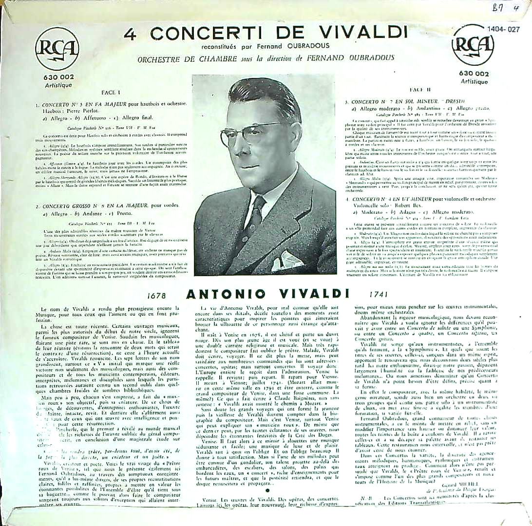 商品コード:1404-027[RCA] F.ウーブラドゥ / ヴィヴァルディ:協奏曲集/Ob協奏曲5番RV.456, 2Vn協奏曲RV.519, 協奏曲 ト長調RV.577, Vc協奏曲Rv.567
