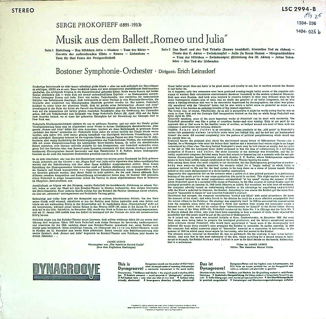 商品コード:1404-026b[RCA] E.ラインスドルフ/ プロコフィエフ:バレエ音楽「ロメオとジュリエット」Op.64(ハイライト)