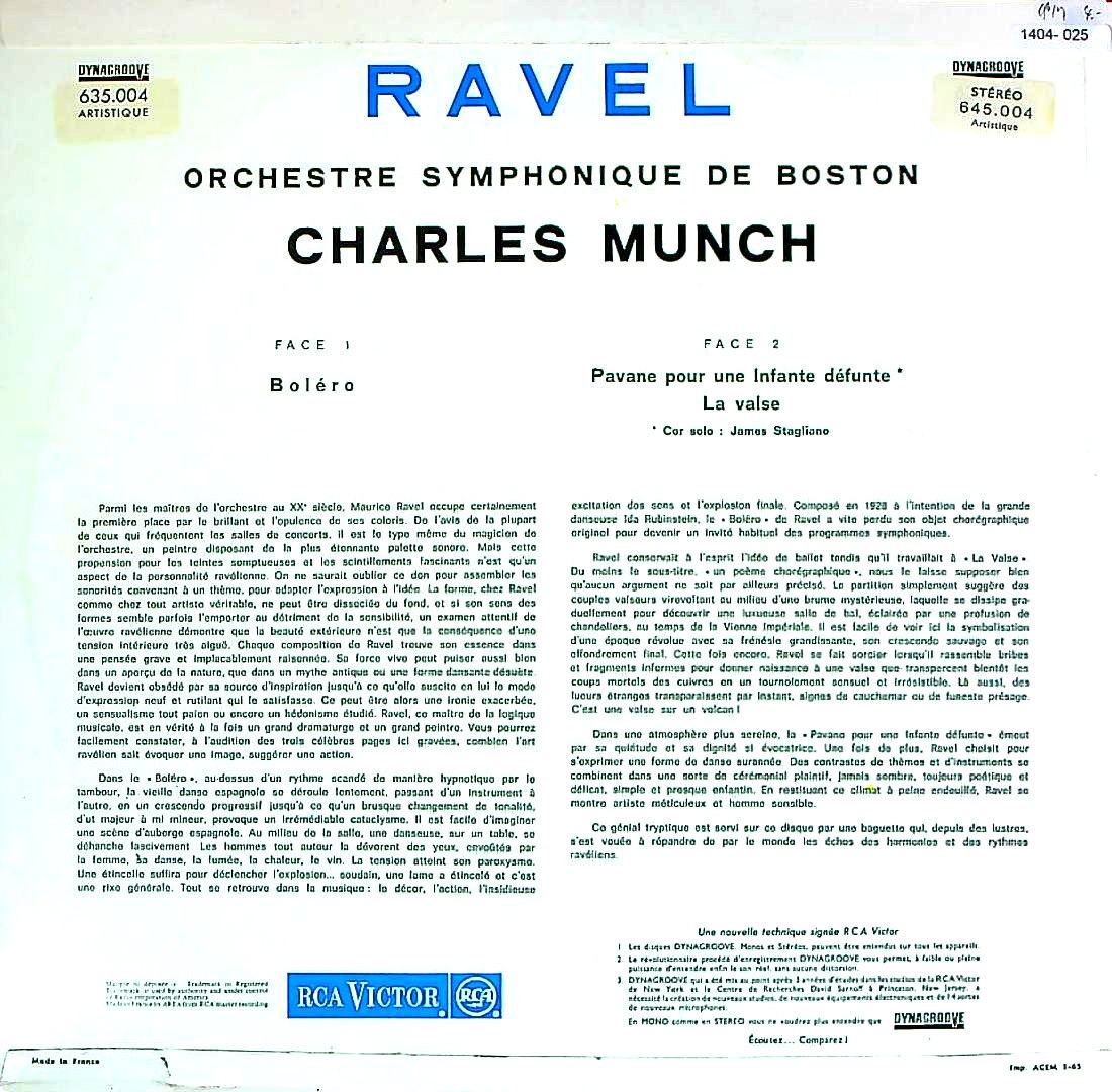 商品コード:1404-025[RCA] C.ミュンシュ / ラヴェル:管弦楽作品集/ボレロ, 亡き王女のためのパヴァーヌ, ラ・ヴァルス