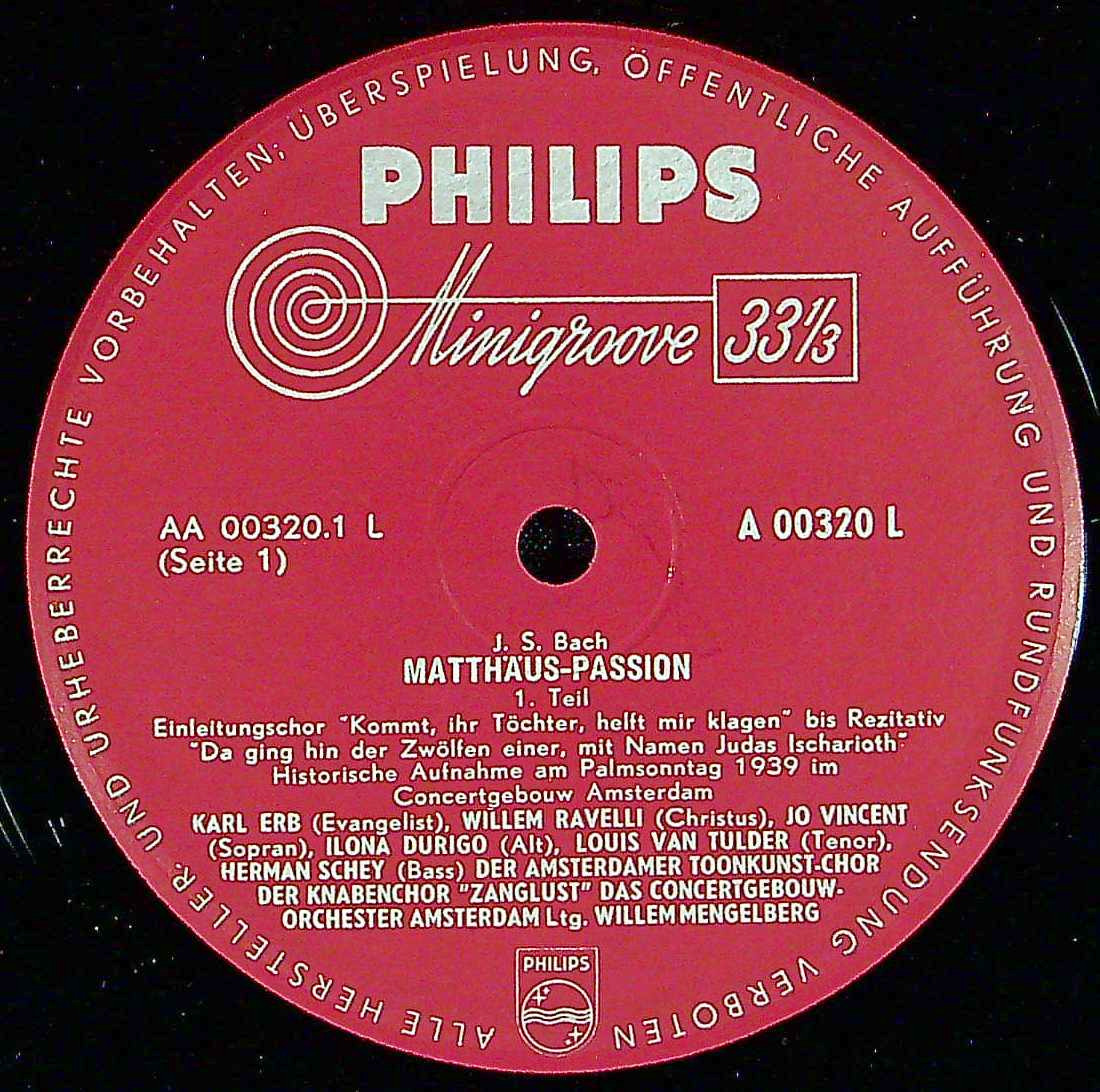 商品コード:1404-009[PHILIPS] W.メンゲルベルク/ バッハ:マタイ受難曲BWV.244(一部カットあり)