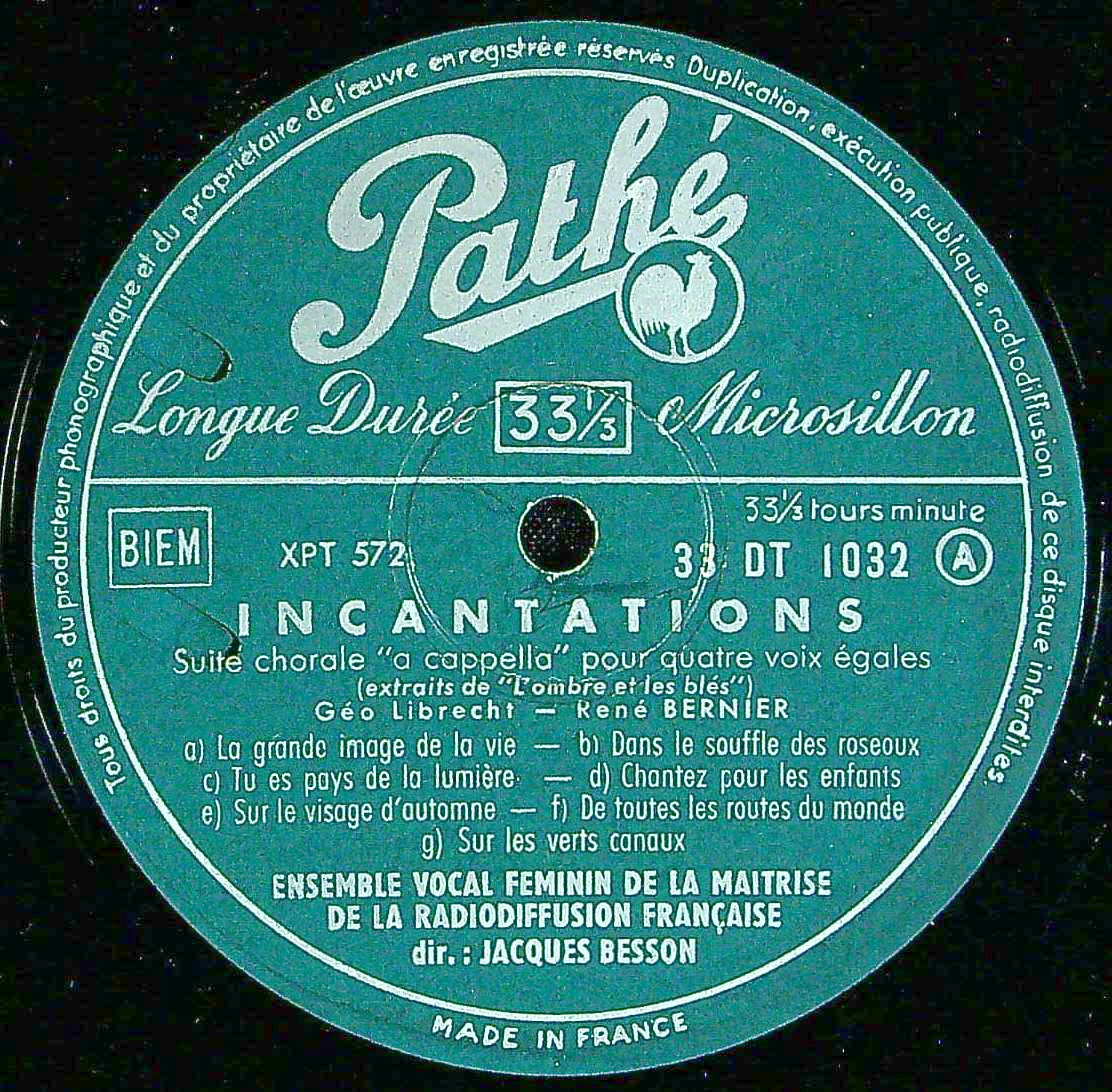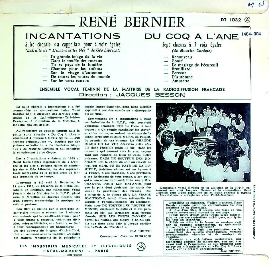 商品コード:1404-004[Pathé] J.ベッソン / ルネ・ベルニエ:合唱曲集/「呪文/INCANTATION」, 「DU COQ A L'ANE」
