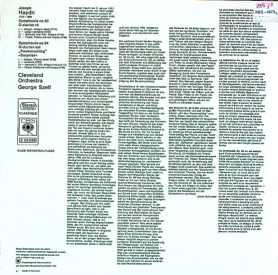 商品コード:REG-4673t[独CBS] G.セル/ ハイドン:交響曲93番, 94番「驚愕」
