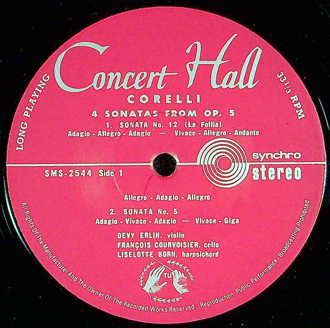 商品コード:1405-061[Concert Hall] D.エルリ(vn) 他/ コレッリ:Vnソナタ集Op.5(抜粋4曲)/12番「ラ・フォリア」, 5番ト短調, 1番ニ長調, 9番イ長調