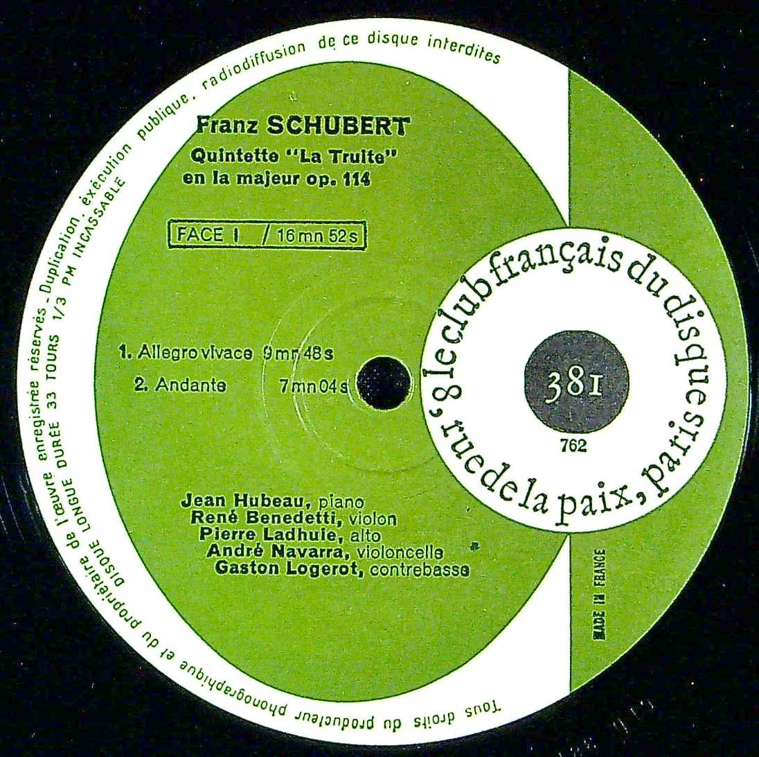 商品コード:1405-060[Club Français] J.ユボー(pf) R.ベネデッティ(vn) 他/ シューベルト:五重奏曲Op.114「鱒」