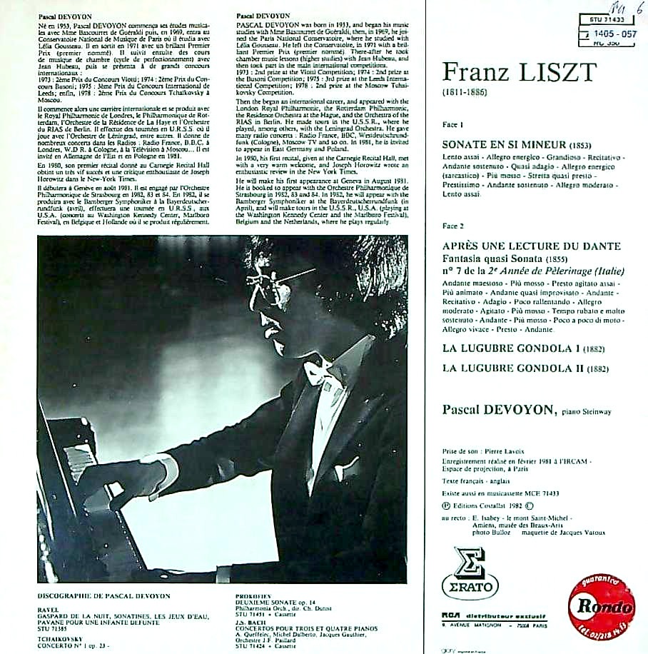 商品コード:1405-057[ERATO] P.ドゥヴァイヨン(pf) / リスト:Pf作品集/ソナタ ロ短調, 「巡礼の年」~ダンテを読んで, 悲しみのゴンドラ第1稿&第2稿