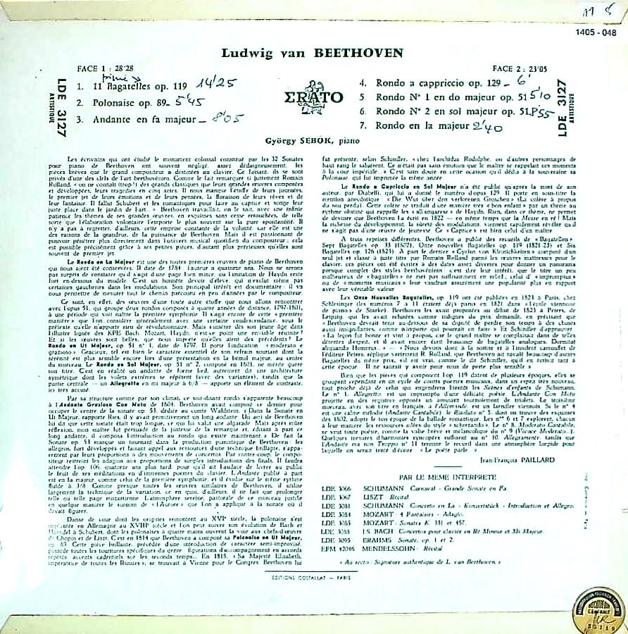 商品コード:1405-048[ERATO] G.シェベーク(pf) / ベートーヴェン:11のバガテルOp.119, ポロネーズOp.89, アンダンテ, ロンド・ア・カプリッチョOp.129, ロンド(3曲)