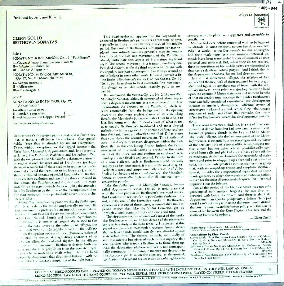 商品コード:1405-044[COLUMBIA] G.グールド(pf) / ベートーヴェン:Pfソナタ8番Op.13「悲愴」, 14番Op.27-2「月光」, 23番Op.57「熱情」