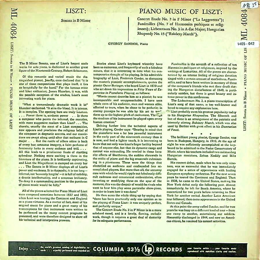 商品コード:1405-042[COLUMBIA] G.シャーンドル(pf) / リスト:Pf作品集/Pfソナタ ロ短調 S.178, おお、愛しうる限り愛せS.541-3 他