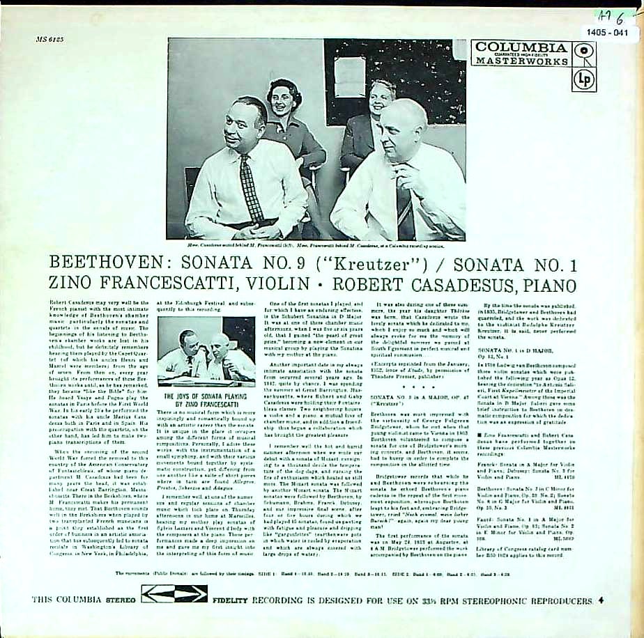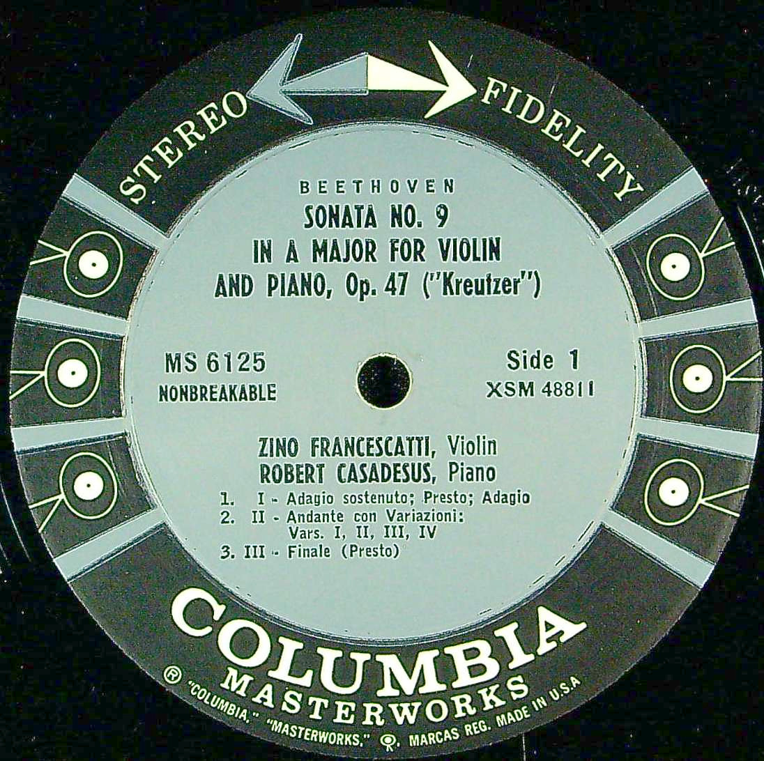 商品コード:1405-041p[COLUMBIA] Z.フランチェスカッティ(vn) R.カサドシュ(pf) / ベートーヴェン:Vnソナタ全集vol.1/9番Op.47「クロイツェル」, 1番Op.12-1