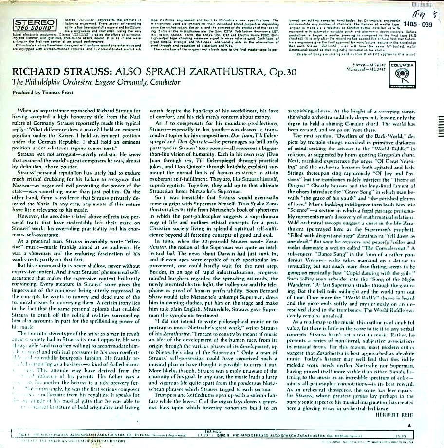 商品コード:1405-039[COLUMBIA] E.オーマンディ/ R.シュトラウス:交響詩「ツァラトゥストラはこう語った」Op.30