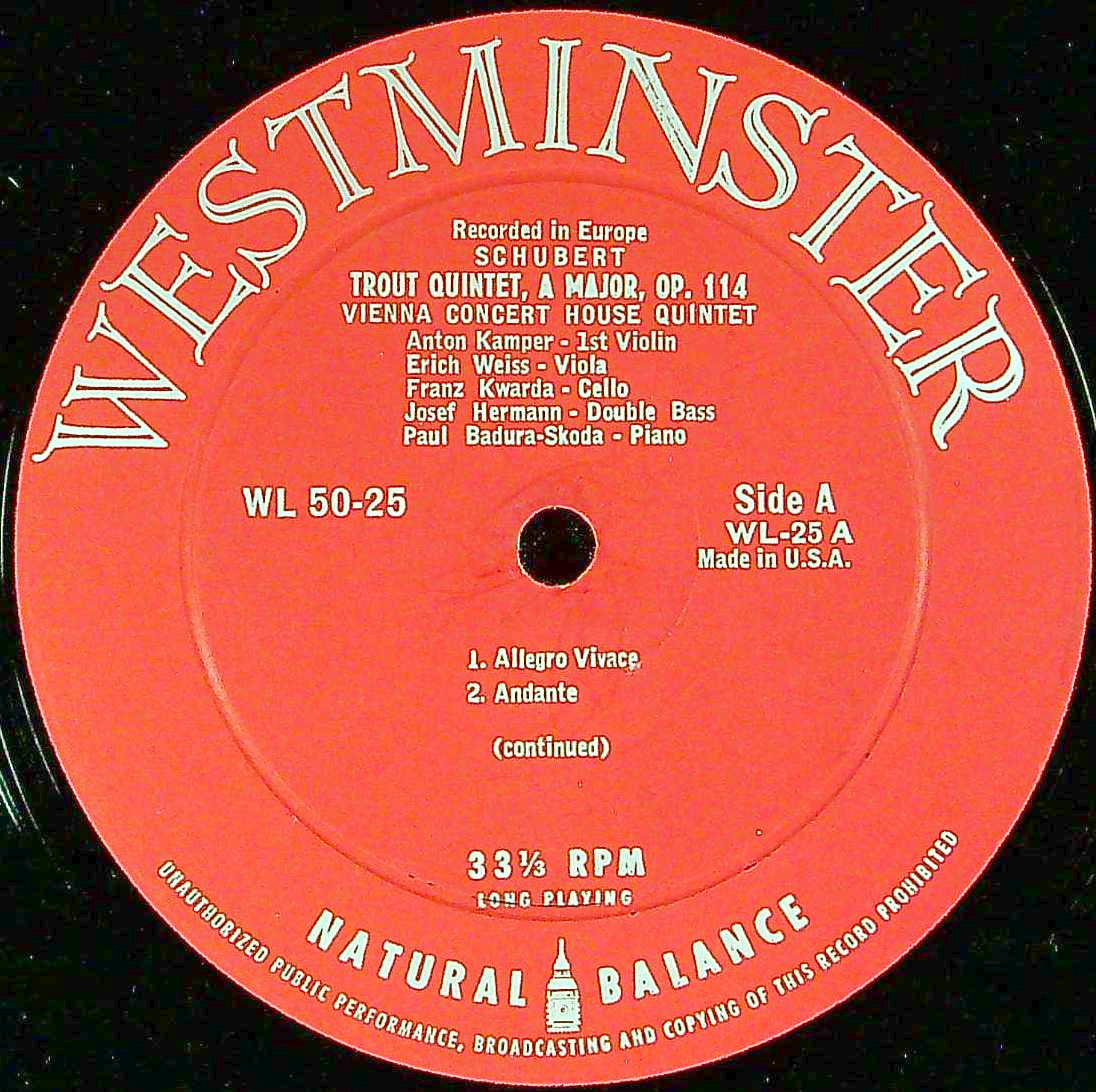 商品コード:1405-028[WESTMINSTER] P.バドゥラ・スコダ(pf) ウィーン・コンツェルトハウスQt. / シューベルト:五重奏曲Op.114「鱒」