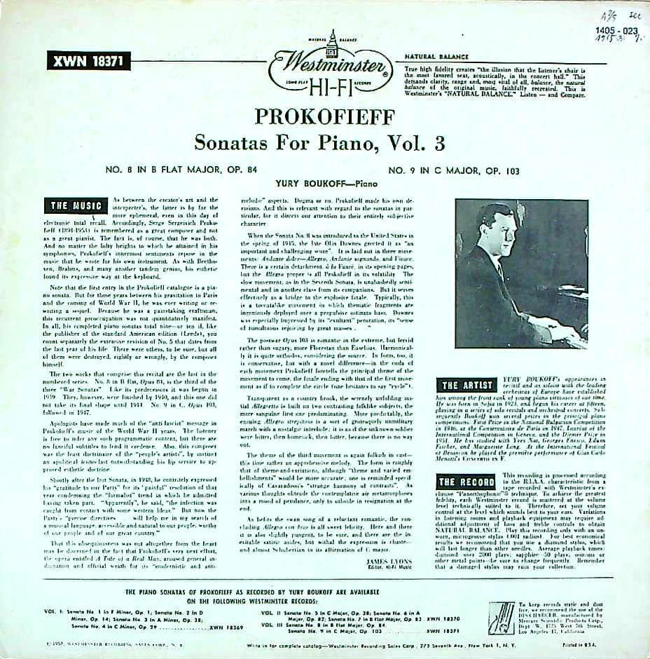 商品コード:1405-023[WESTMINSTER] Y.ブーコフ(pf) / プロコフィエフ:Pfソナタ全集(全3枚・完結)/Pfソナタ1~9番