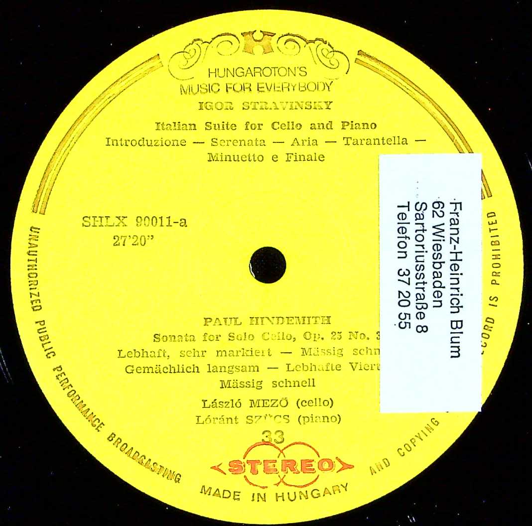 商品コード:REG-4699t[洪HUNGAROTON] L.メゼー(vc)/ ストラヴィンスキー:イタリア組曲, ヒンデミット:無伴奏VcソナタOp.25-3, ブリテン:無伴奏Vc組曲Op.72