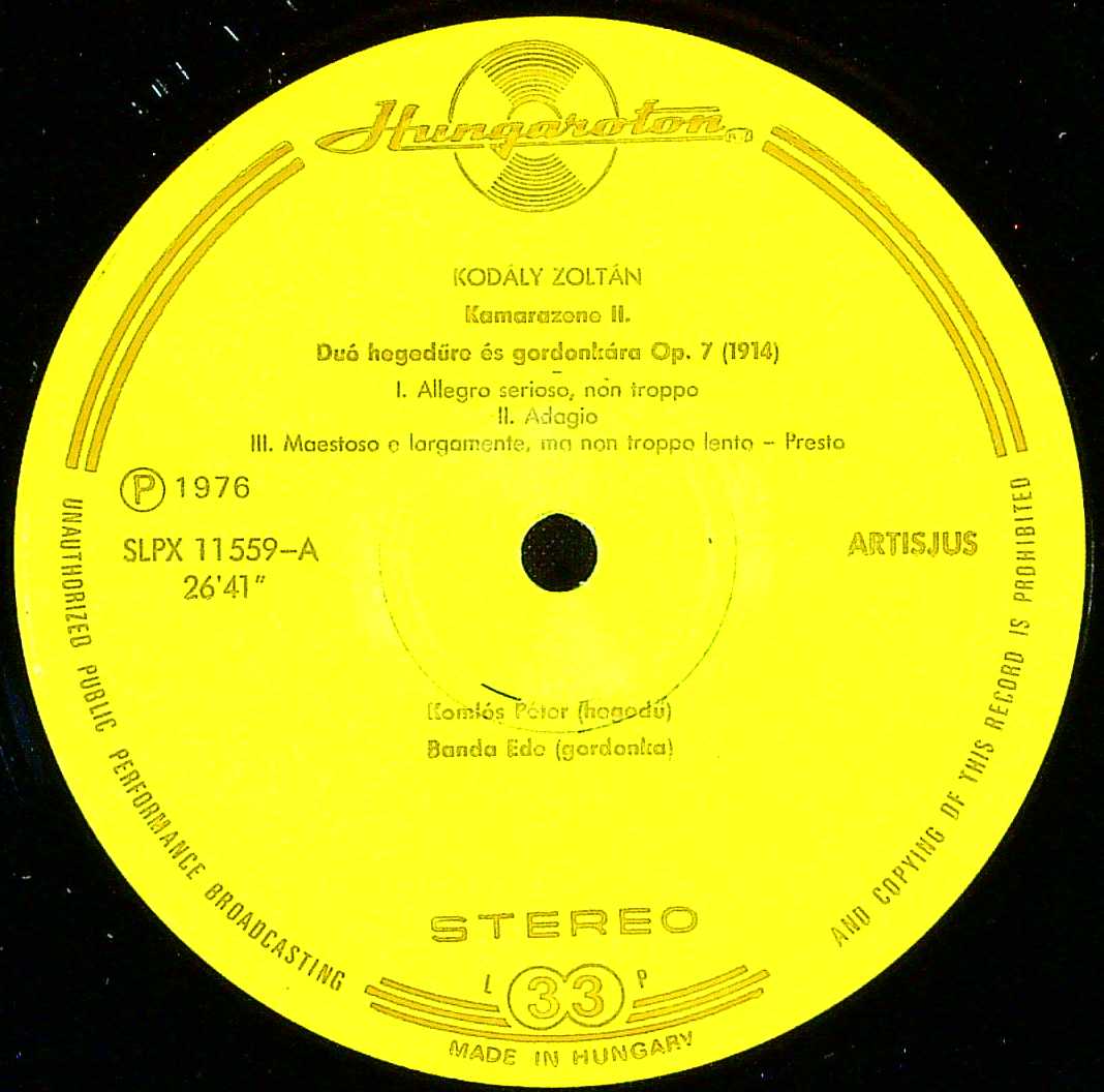 商品コード:1406-060t[HUNGAROTON] P.コムローシュ(vn) E.バンダ(vc) 他/ コダーイ:室内楽曲集Vol.2/2重奏曲Op.7, 組曲「墓碑銘」, バッハ原曲によるコラール前奏曲