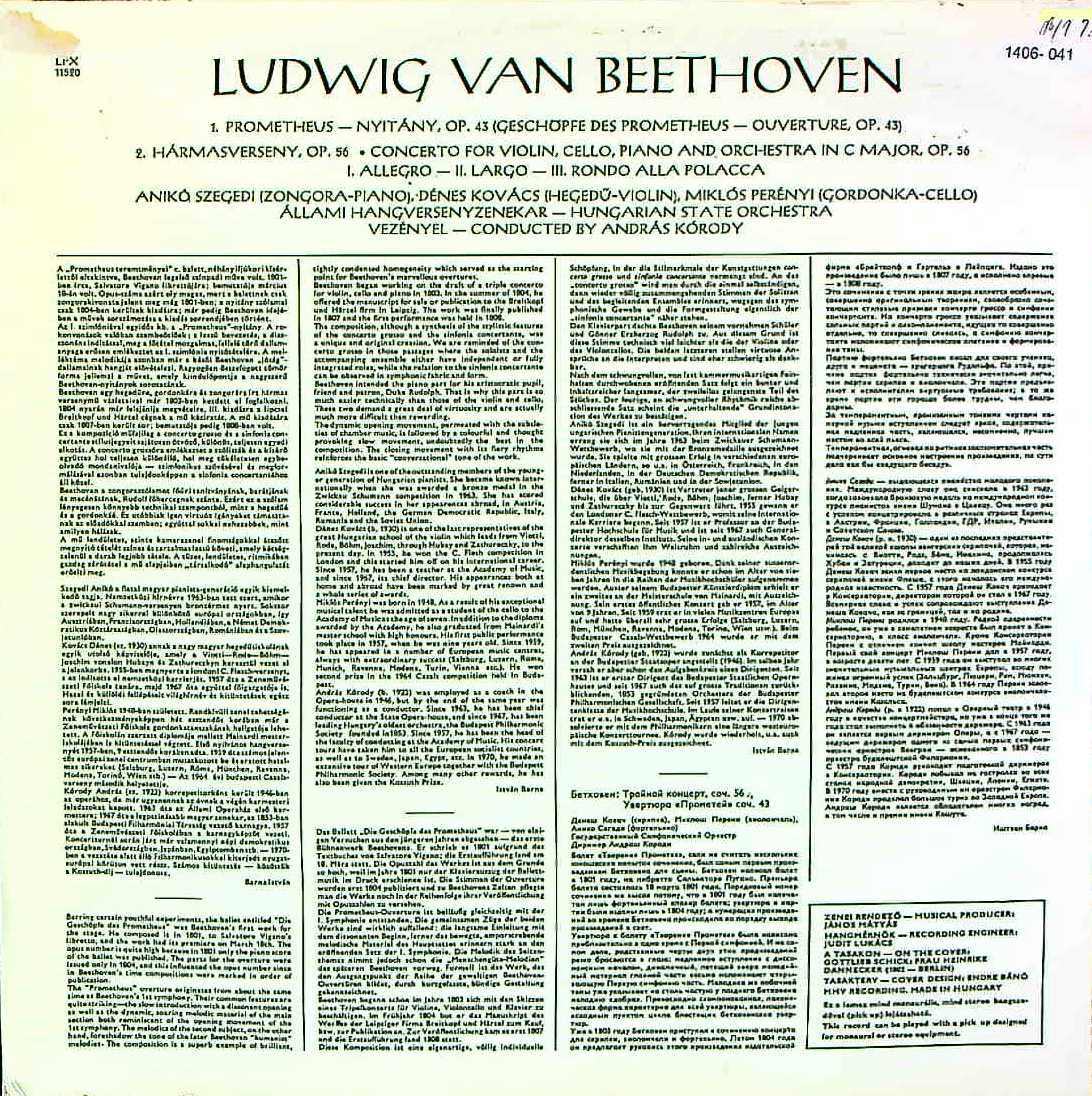 商品コード:1406-041n[HUNGAROTON] D.コヴァーチュ(vn) M.ペレーニ(vc) A.セゲディ(pf) / ベートーヴェン:プロメテウスの創造物Op.43~序曲, 三重協奏曲Op.56