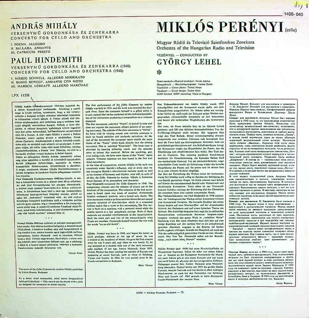 商品コード:1406-040n[HUNGAROTON] M.ペレーニ(vc)/ ミハーイ:Vc協奏曲, ヒンデミット:Vc協奏曲