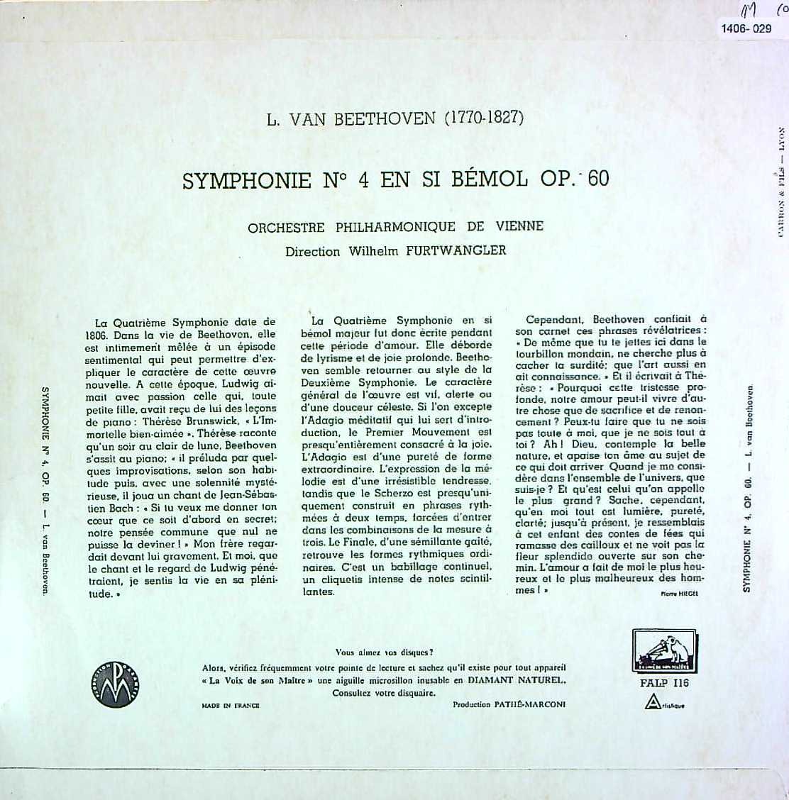 商品コード:1406-029[VSM] W.フルトヴェングラー / ベートーヴェン:交響曲4番Op.60
