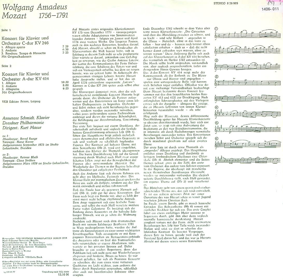 商品コード:1406-011t[ETERNA] A.シュミット(pf) / モーツァルト:Pf協奏曲8番K.246, Pf協奏曲12番K.414